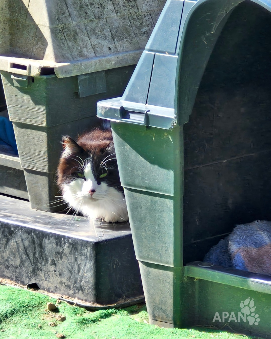 És un gat tímid, dels que prefereixen observar abans de fer el pas. Li agrada la tranquil·litat, la companyia dels seus germans i les estones de sol que escalfen sense pressa. A les tardes és habitual veure’l a la porta de la gatera, assegut, mirant què fem… com si s’assegurés que tot està en ordre amb aquella mirada profunda i curiosa.