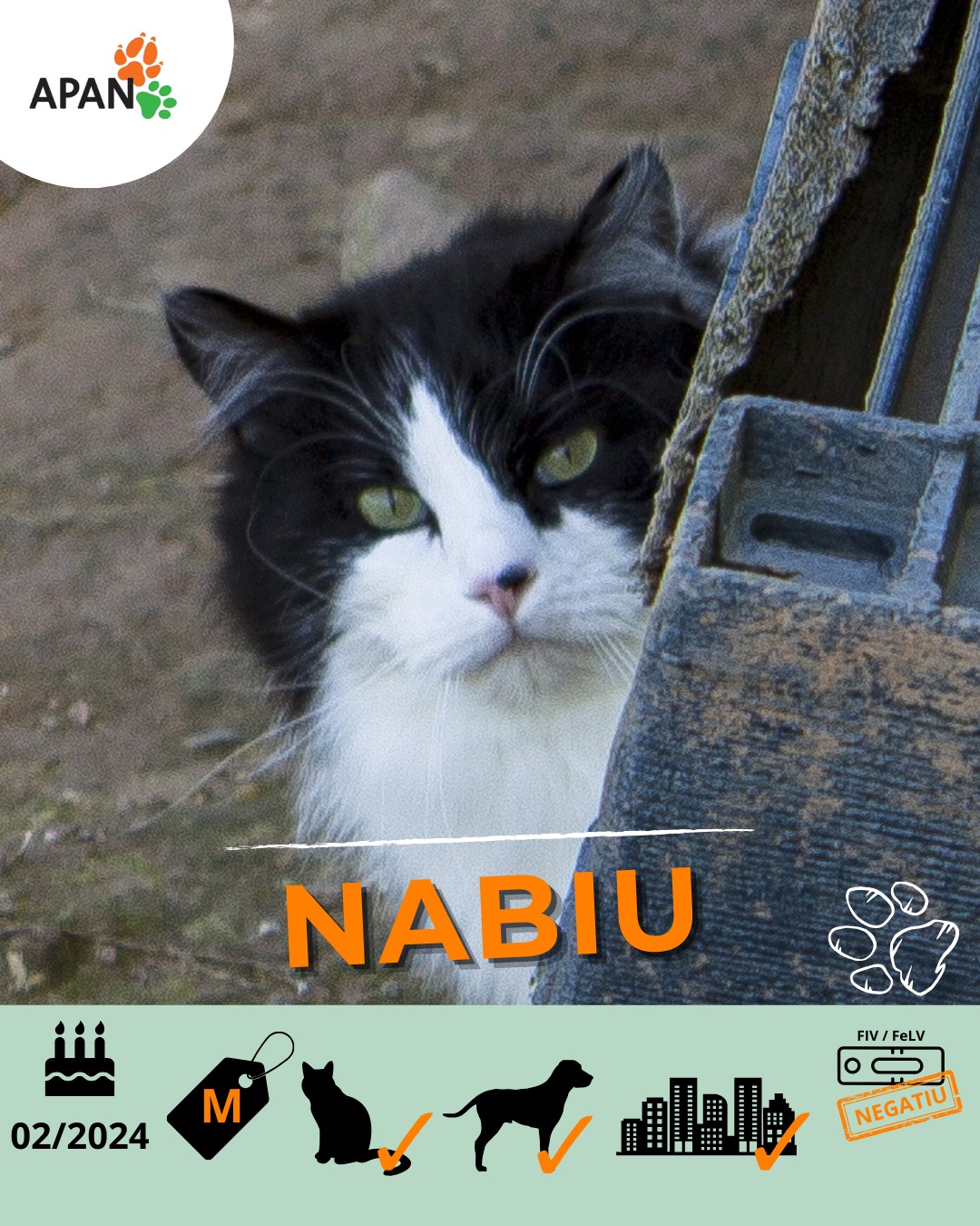 En Nabiu necessita temps i una mica de paciència, sí. Però quan se senti segur i comenci a obrir-se, descobrireu un gat divertit, observador i molt tafaner.