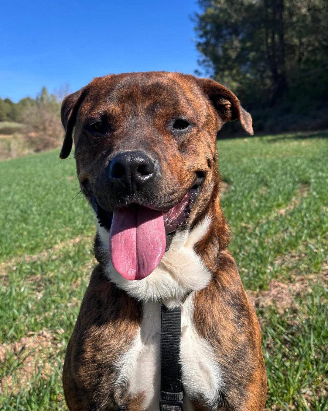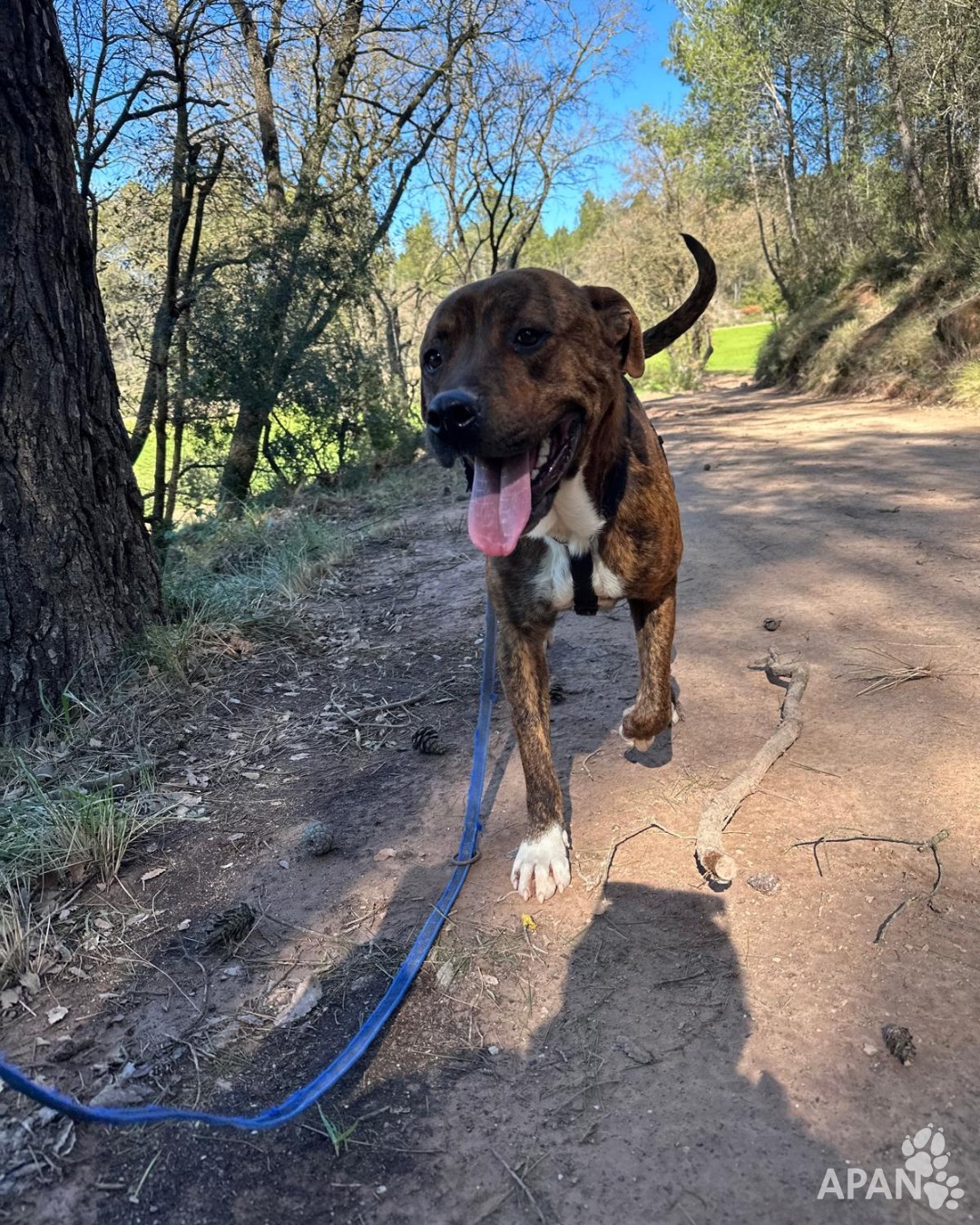 Als passejos surt amb entusiasme i al principi estira de la corretja; és normal quan tot el que té són estones curtes i massa emoció acumulada. Amb rutina i una família al seu costat, aquest impuls es convertirà en equilibri. Amb altres gossos és selectiu, però quan troba els seus, sap conviure.