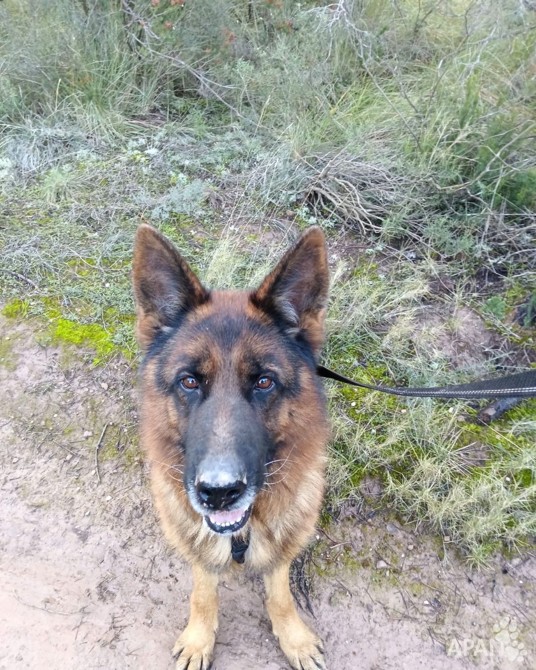 En Rex és afectuós, però també té aquella independència equilibrada tan típica dels bons pastors alemanys. Busca el teu contacte, sí, però si en aquell moment no pot ser, sap esperar amb calma o entretenir-se pel seu compte. No és exigent, és estable. Durant el passeig va molt pendent de la seva persona, connectat, atent, caminant bé amb la corretja, com si estigués programat per fer equip amb tu.